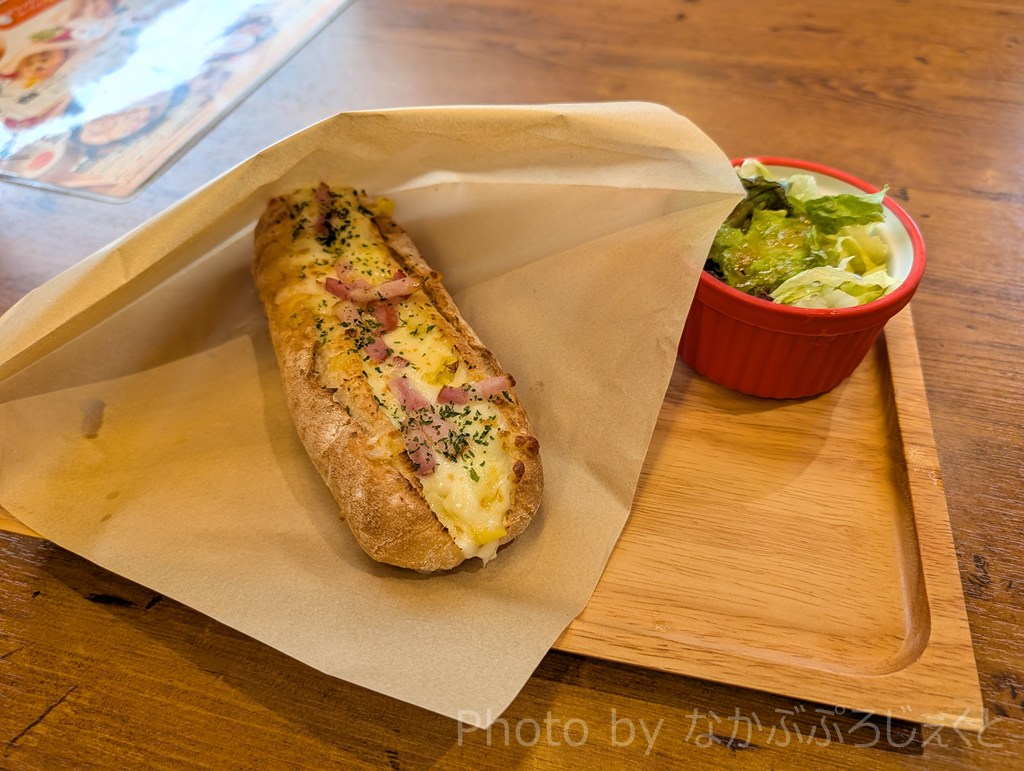 さっそく食べてみると、さすがにできたてでアツアツ、チーズもとろーりとしていて、普通の人なら朝ご飯には十分のボリューム。