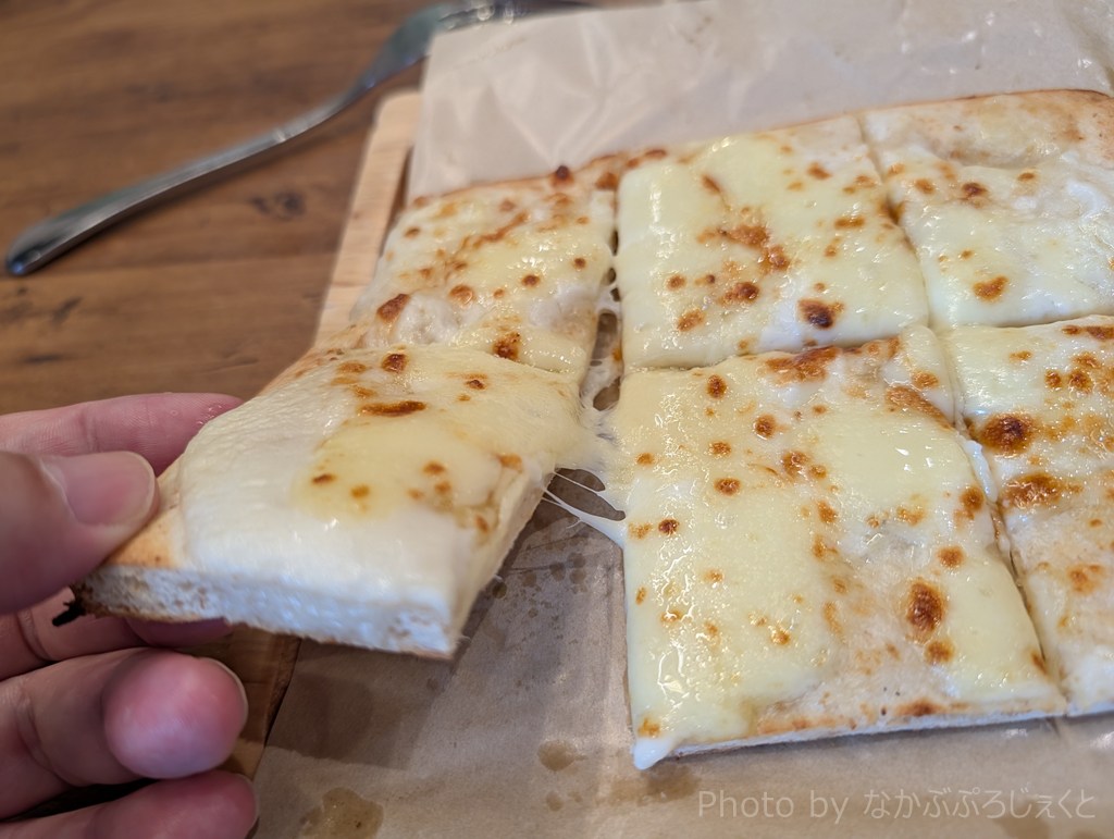 チーズピザももちろんアツアツで、チーズがとろーり。