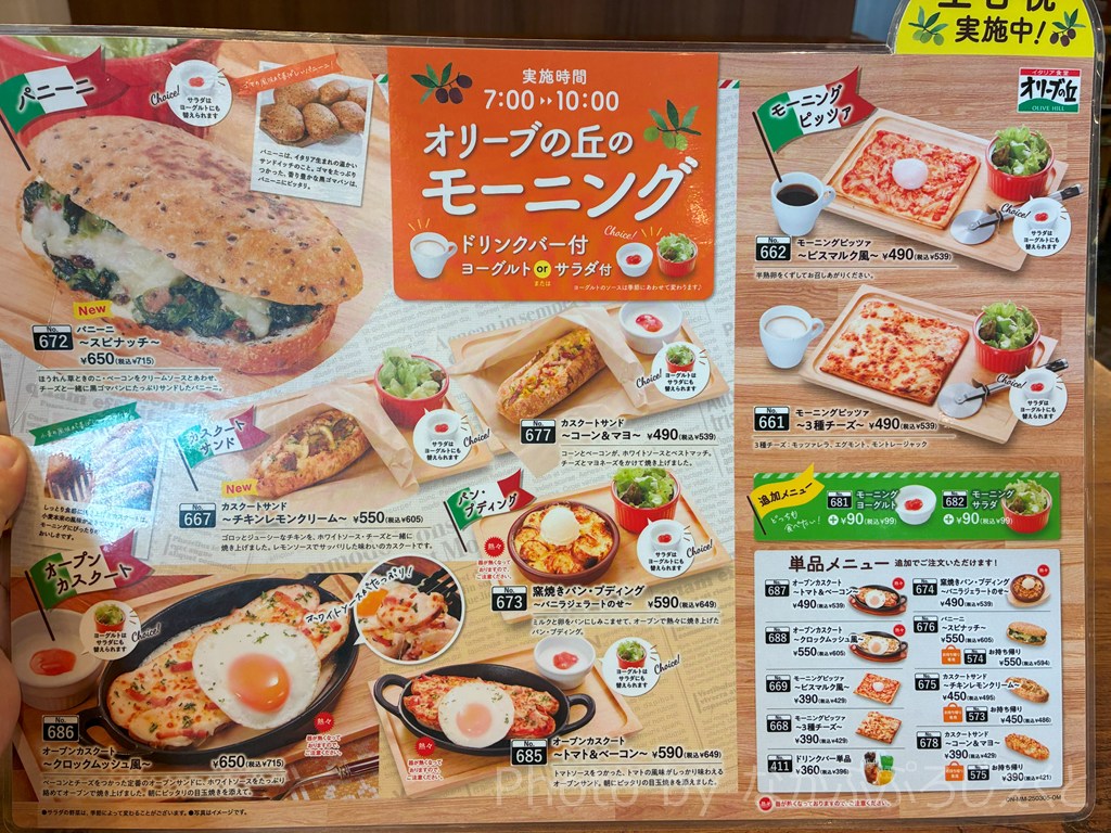 土日祝日限定で朝7時から食べることができる、オリーブの丘さんのモーニングメニュー。