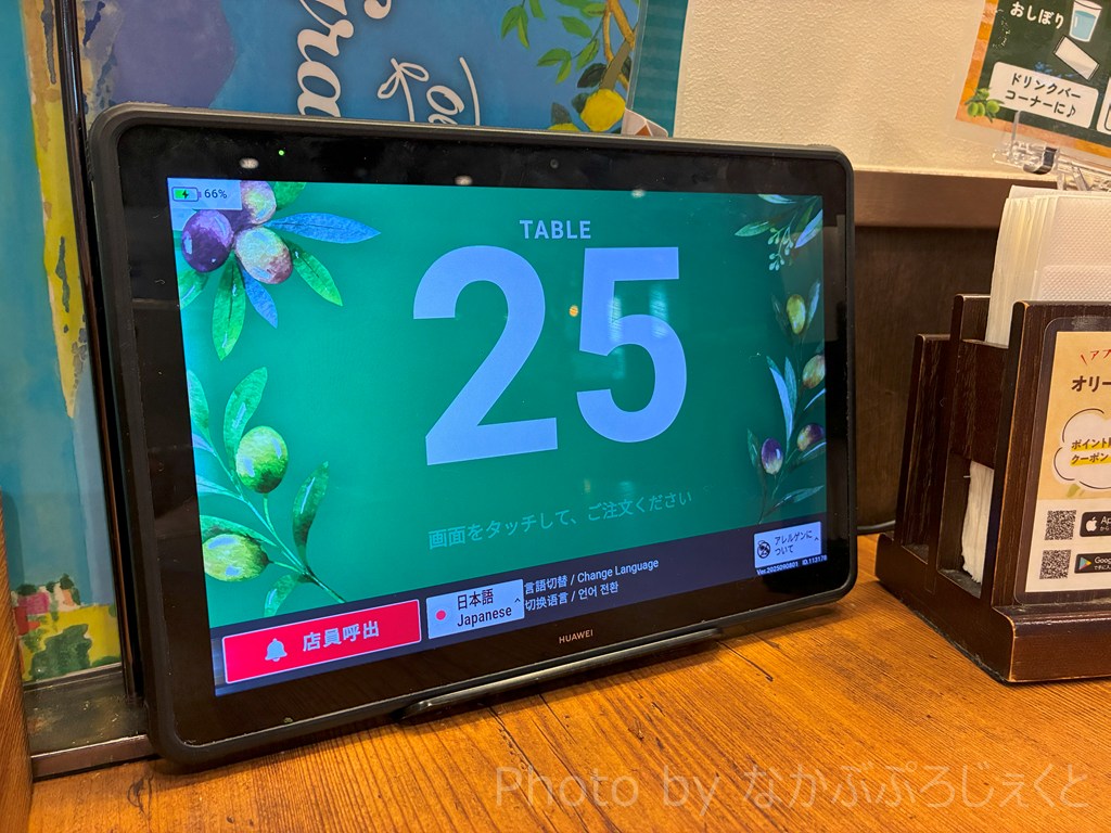席に着くとタブレットがお待ちになっており、注文はタブレットで行います。